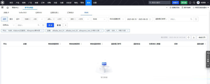 除了基础的利润核算功能,易仓ERP还提供RMA报表,帮助卖家跟踪退款、重发等售后成本。这些数据对于跨境电商企业准确计算净利润至关重要。传统的利润核算往往忽略售后成本,导致利润虚高。而易仓ERP多平台利润功能将这些成本纳入核算体系,让利润数据更加真实可靠。对于同时运营多平台的跨境电商企业来说,易仓ERP大大简化了财务工作流程,提高了核算效率。